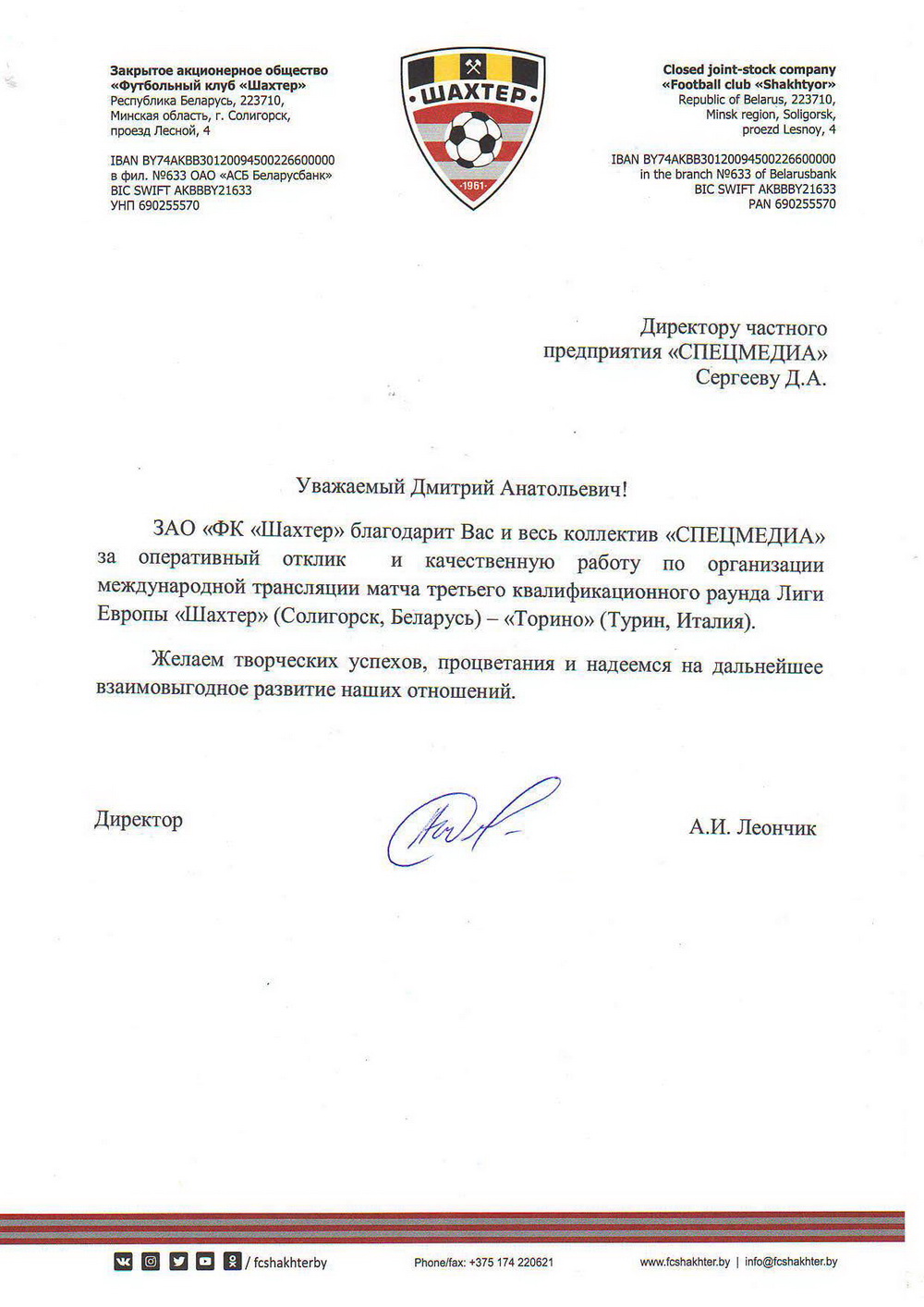 Директор ЗАО "ФК Шахтер" -