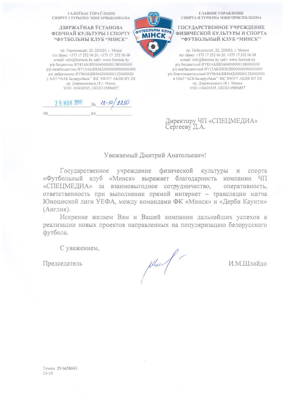 Председатель футбольного клуба "Минск" -