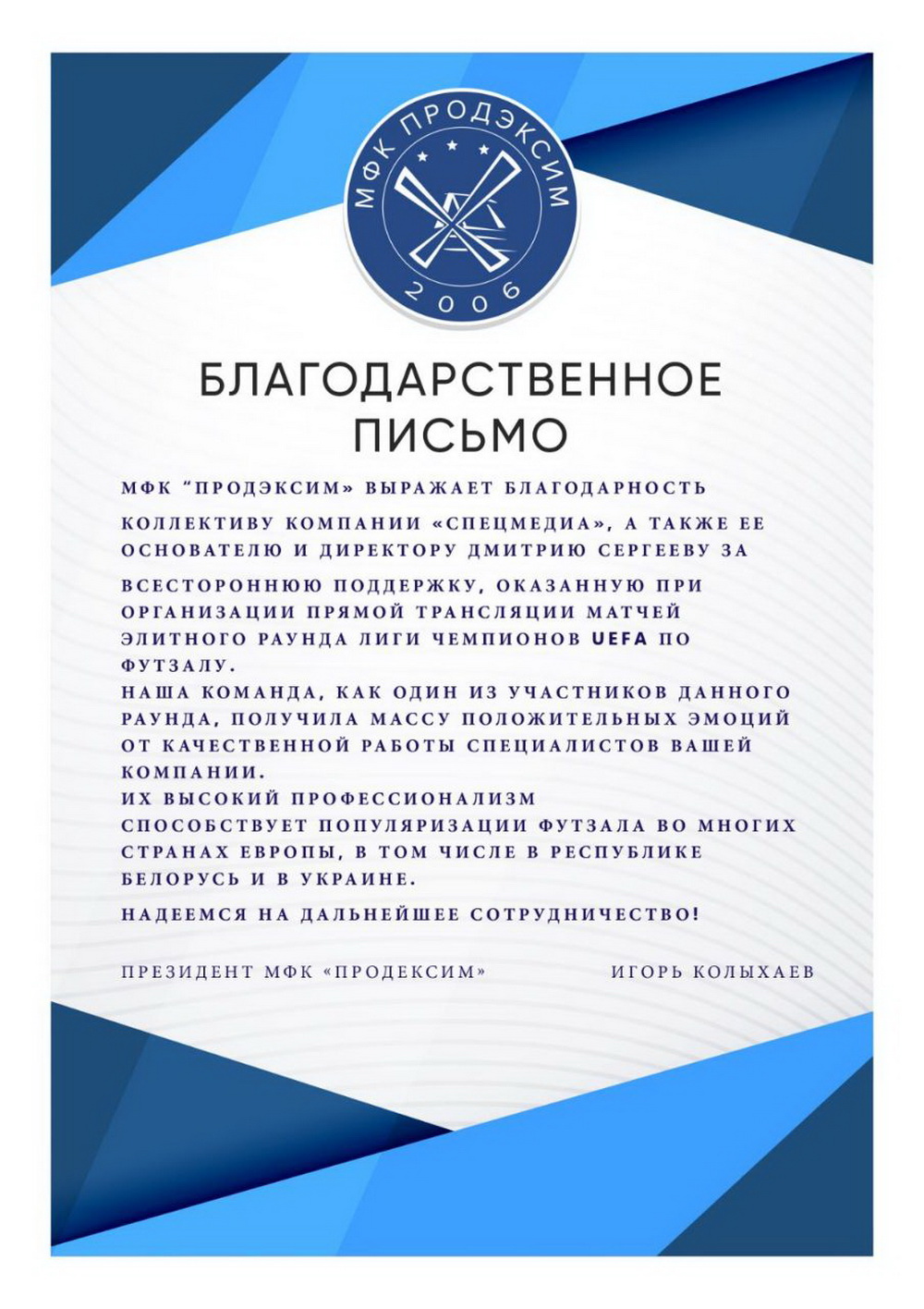 Президент МФК "Продексим"