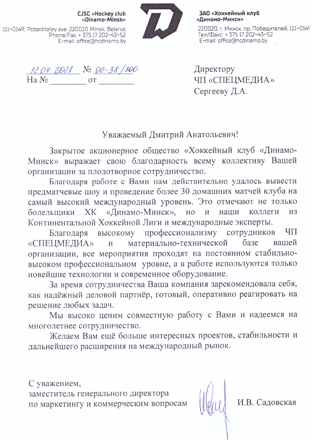 Зам. генерального директора "ХК Динамо-Минск" -