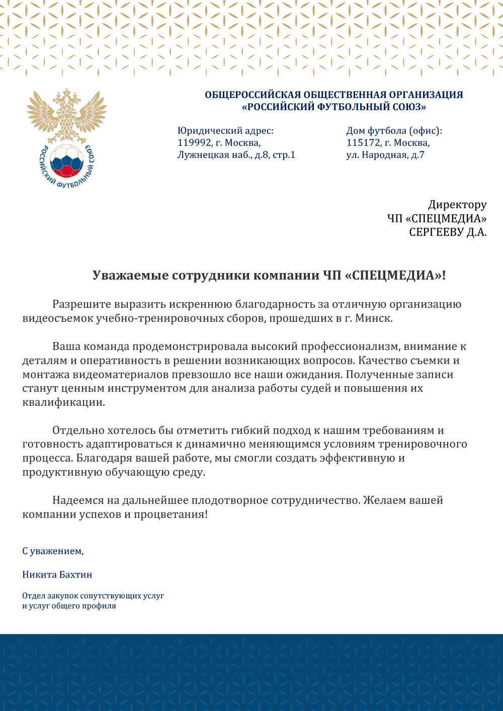 Общероссийская общественная организация спортивная федерация по футболу «Российский футбольный союз» -